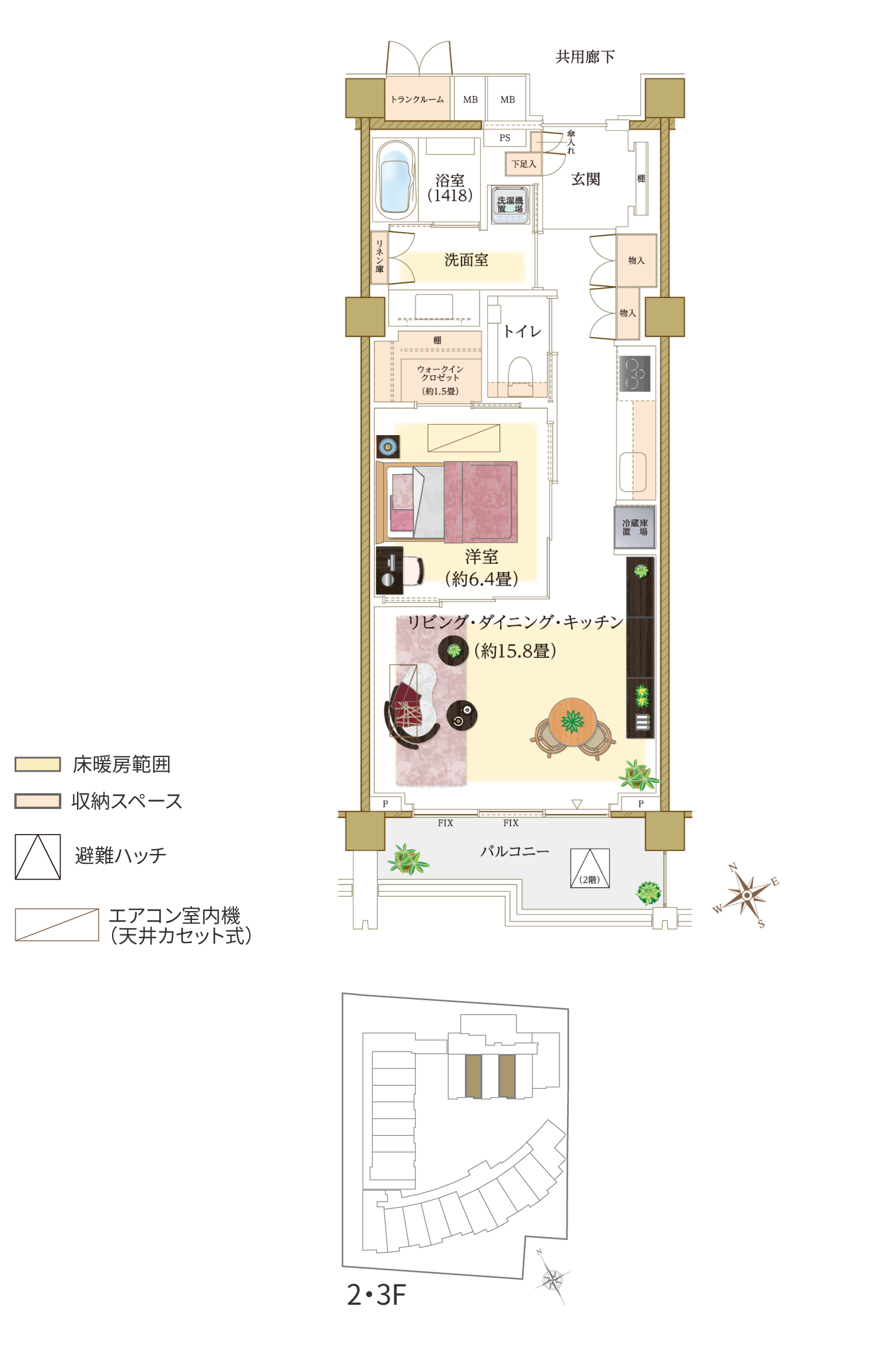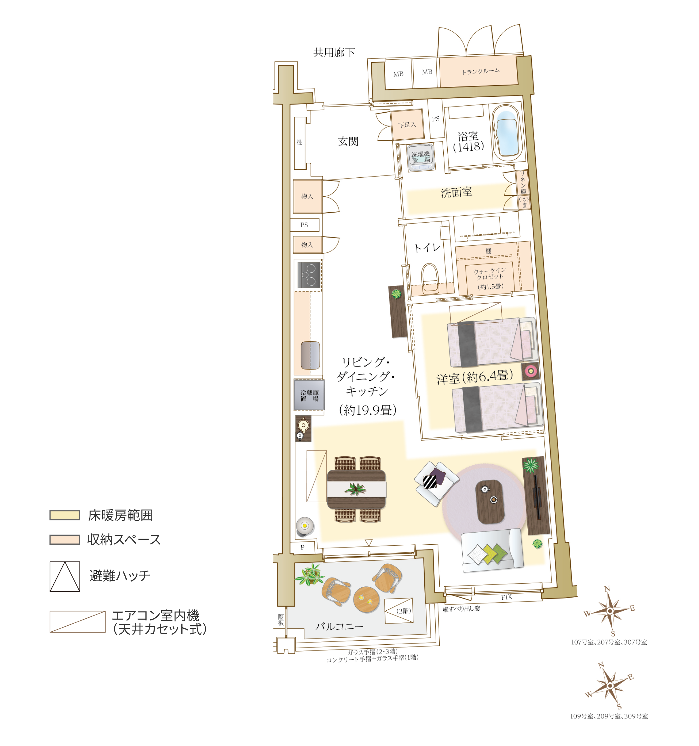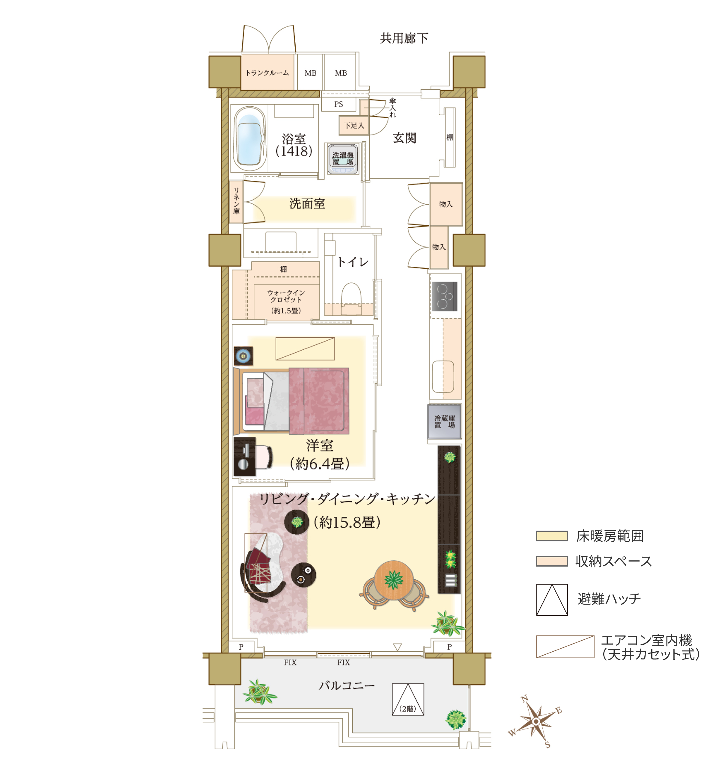 キッチンと一体の大空間として利用が可能。 - 共用物入や洋室のウォークインクロゼット